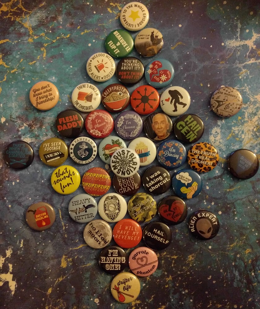 All 89 buttons. 25% of sales goes toward Last Podcast on the Left. Lots of your favorite saying and quotes. No subs. As is. Megustalations!
